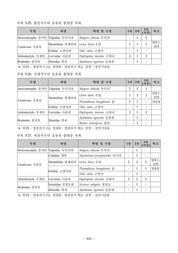 제목 : DMZ 일원 생태계 조사 : 민통선이북지역 중부산악권역