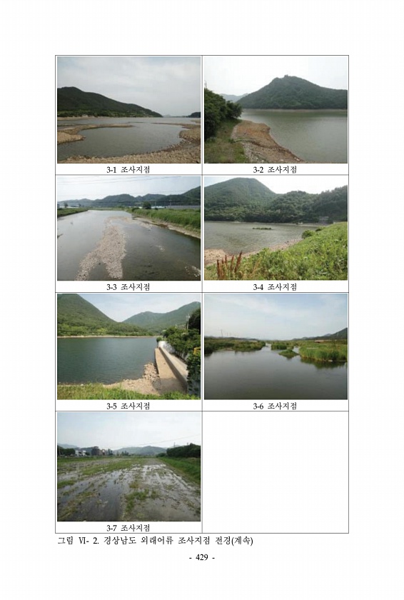 3-1 조사지점 3-2 조사지점 3-3 조사지점 3-4 조사지점 3-5 조사지점 3-6 조사지점 3-7 조사지점 그림 Ⅵ- 2. 경상남도 외래어류 조사지점 전경 계속 429