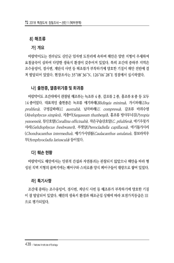 제목 : (2018) 특정도서 정밀조사 : 신안북부권역