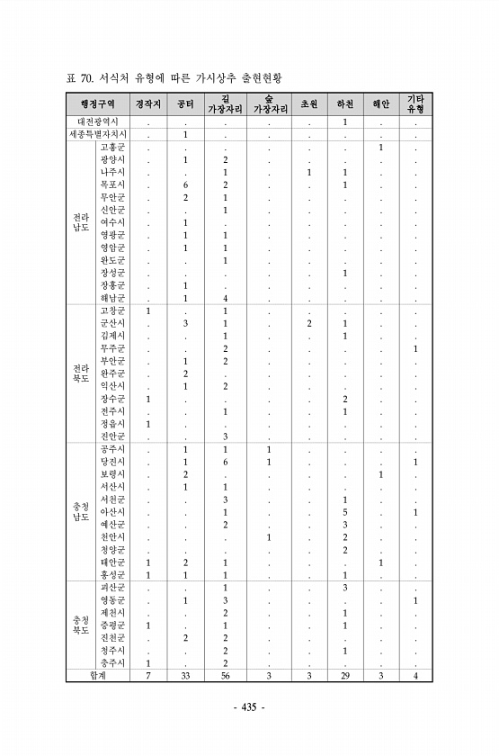 435 행정구역 경작지 공터 길 가장자리 숲 가장자리 초원 하천 해안 기 유타 형 대전광역시 1 세종특별자치시 1 전라 남도 고흥군 1 광양시 1 2 나주시 1 1 1 목포시 6 2 1 무안군 2 1 신안군 1 여수시 1 영광군 1 1 영암군 1 1 완도군 1 장성군 1 장흥군 1 해남군 1 4 전라 북도 고창군 1 1 군산시 3 1 2 1 김제시 1 1 무주군 2 1 부안군 1 2 완주군 2 익산시 1 2 장수군 1 2 전주시 1 1 정읍시 1 진안군 3 충청 남도 공주시 1 1 1 당진시 1 6 1 1 보령시 2 1 서산시 1 1 서천군 3 1 아산시 1 5 1 예산군 2 3 천안시 1 2 청양군 2 태안군 1 2 1 1 홍성군 1 1 1 1 충청 북도 괴산군 1 3 영동군 1 3 1 제천시 2 1 증평...