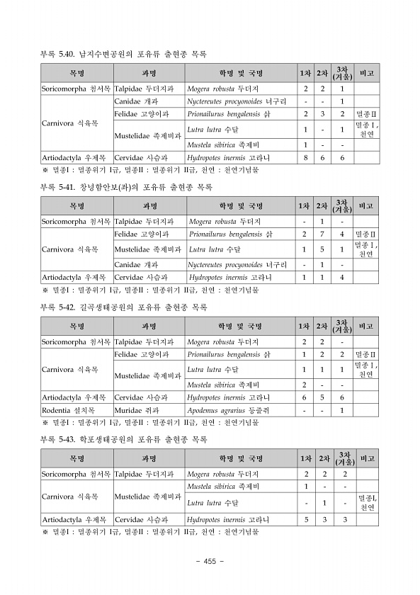 제목 : DMZ 일원 생태계 조사 : 민통선이북지역 중부산악권역