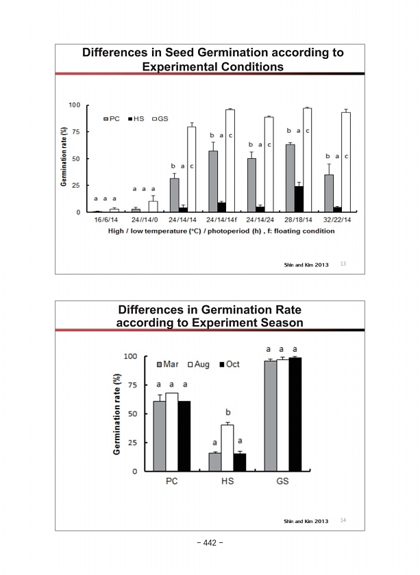Shin and Kim 2013 Differences in Germination Rate according to Experiment Season 14 Shin and Kim 2013 Differences in Seed Germination according to Experimental Conditions 13 442