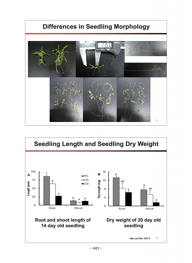 Shin and Kim 2013 Seedling Length and Seedling Dry Weight Root and shoot length of 14 day old seedling Dry weight of 20 day old seedling 16 Differences in Seedling Morphology 15 443