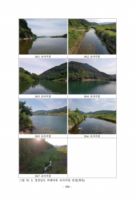 10-1 조사지점 10-2 조사지점 10-3 조사지점 10-4 조사지점 10-5 조사지점 10-6 조사지점 10-7 조사지점 그림 Ⅵ- 2. 경상남도 외래어류 조사지점 전경 계속 436