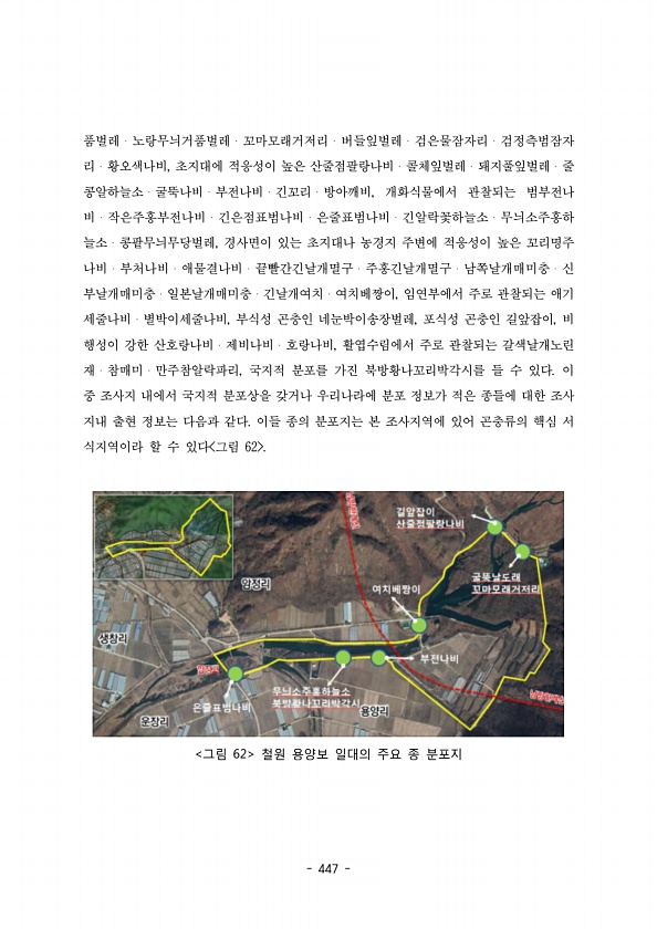 447 품벌레 노랑무늬거품벌레 꼬마모래거저리 버들잎벌레 검은물잠자리 검정측범잠자 ? ? ? ? ? 리 황오색나비 초지대에 적응성이 높은 산줄점팔랑나비 콜체잎벌레 돼지풀잎벌레 줄 ? , ? ? ? 콩알하늘소 굴뚝나비 부전나비 긴꼬리 방아깨비 개화식물에서 관찰되는 범부전나 ? ? ? ? , 비 작 ? 은주홍부전나비 긴은점표범나비 은줄표범나비 긴알락꽃하늘소 무늬소주홍하 ? ? ? ? 늘소 콩팥무늬무당벌레 경사면이 있는 초지대나 농경지 주변에 적응성이 높은 꼬리명주 ? , 나비? ? ? 부처나비 애물결나비 끝빨간긴날개멸구 주홍긴날개멸구 남쪽날개매미충 신 ? ? ? 부날개매미충 일본날개매미충 긴날개여치 여치베짱이 임연부에서 주로 관찰되는 애기 ? ? ? , 세줄나비 별박이세줄나비 부식성 곤충인 네눈박이송장벌레 포식성...