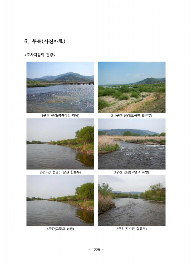 1228 6. 부록 사진자료 조사지점의 전경 1구간 전경 뿅뿅다리 하방 2-1구간 전경 오곡천 합류부 2-2구간 전경 고달천 합류부 3구간 전경 고달교 하방 4구간 고달교 상방 5구간 지수천 합류부