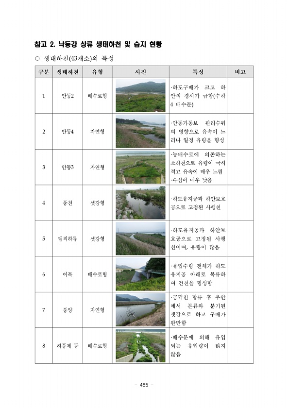 485 참고 2. 낙동강 상류 생태하천 및 습지현황