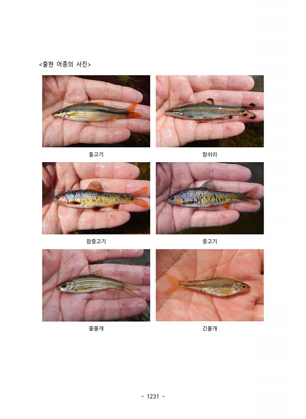 1231 출현 어종의 사진 돌고기 참쉬리 참중고기 중고기 줄몰개긴몰개
