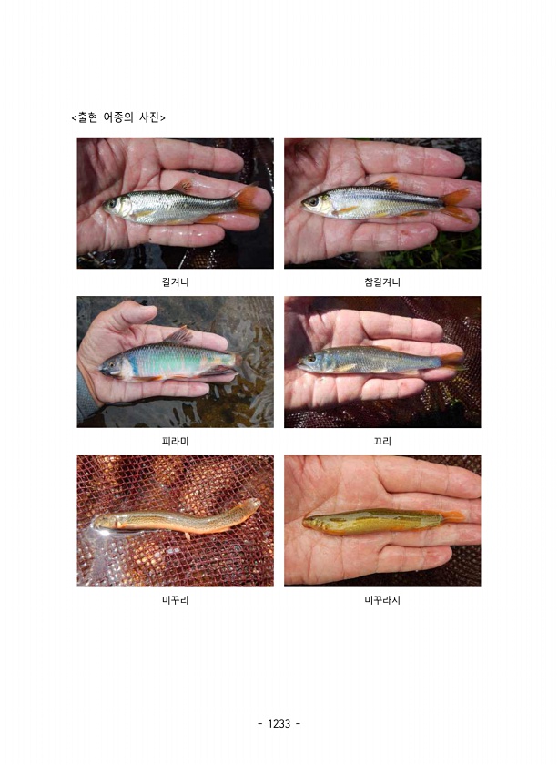 1233 출현 어종의 사진 갈겨니 참갈겨니 피라미 끄리 미꾸리미꾸라지