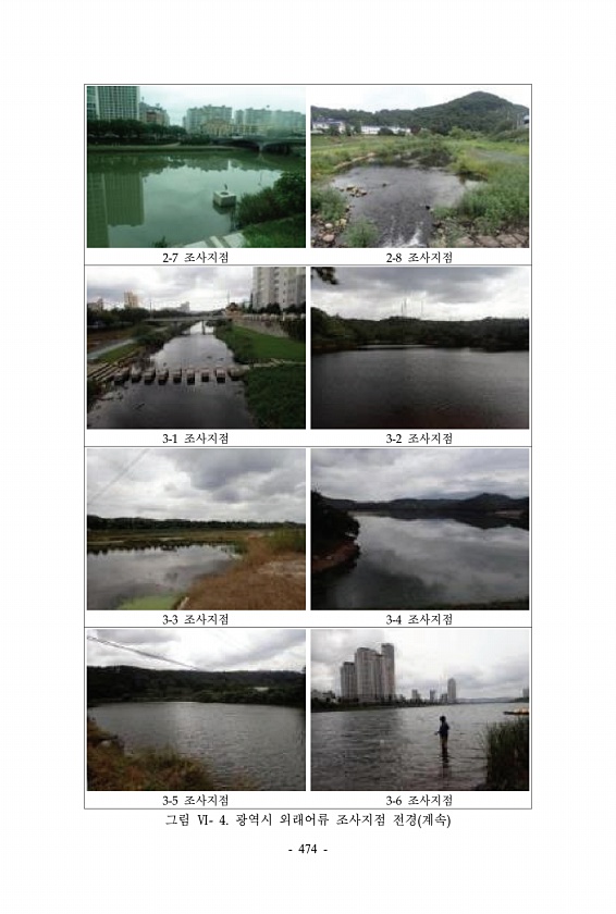 2-7 조사지점 2-8 조사지점 3-1 조사지점 3-2 조사지점 3-3 조사지점 3-4 조사지점 3-5 조사지점 3-6 조사지점 그림 Ⅵ- 4. 광역시 외래어류 조사지점 전경 계속 474