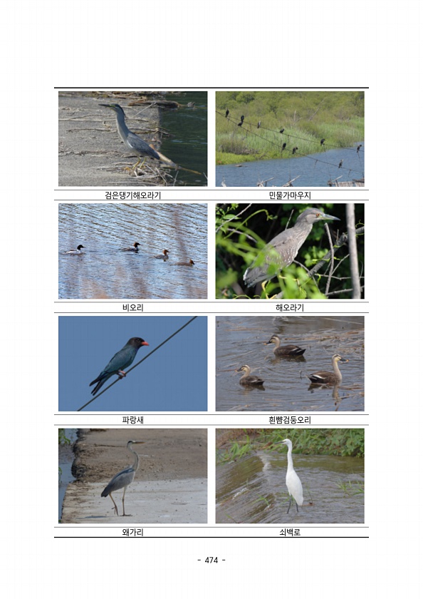 474 검은댕기해오라기 민물가마우지 비오리 해오라기 파랑새 흰뺨검둥오리 왜가리쇠백로