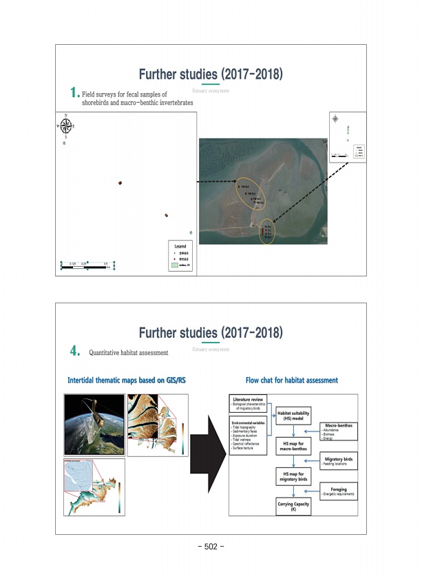 4. Quantitative habitat assessment Intertidal thematic maps based on GIS/RS Estuary ecosystem Further studies 2017-2018 Flow chat for habitat assessment Field surveys for fecal samples of shorebirds and macro-benthic invertebrates 1. Further studies 2017-2018 Estuary ecosystem 502