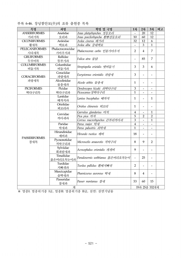 497 국 명 조사결과 비고 1 차 봄 차 여름2 Order Soricomorpha 첨서목 Family Talpidae 두더지과 Mogera robusta 두더지 T T Order Carnivora 식육목 Family Canidae 개과 Nyctereutes procyonoides 너구리 S M, S Family Mustelidae 족제비과 Lutra lutra 수달 F, S M, S 천, 330Ⅰ Mustela sibirica 족제비 M Family Felidae 고양이과 Prionailurus bengalensis 삵 S M, S Ⅱ Felis catus 고양이 M 야생화 Order Artiodactyla 우제목 Family Cervidae 사슴과 Hydropotes inermis 고라니 S, F, V ...