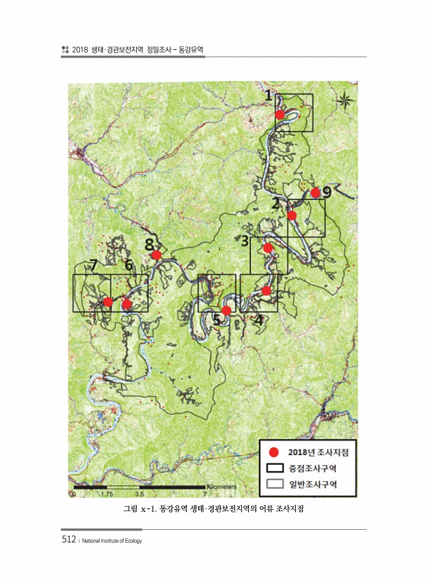 2018 생태·경관보전지역 정밀조사 동강유역 512 ? National Institute of Ecology 그림 ⅹ-1. 동강유역 생태·경관보전지역의 어류조사지점