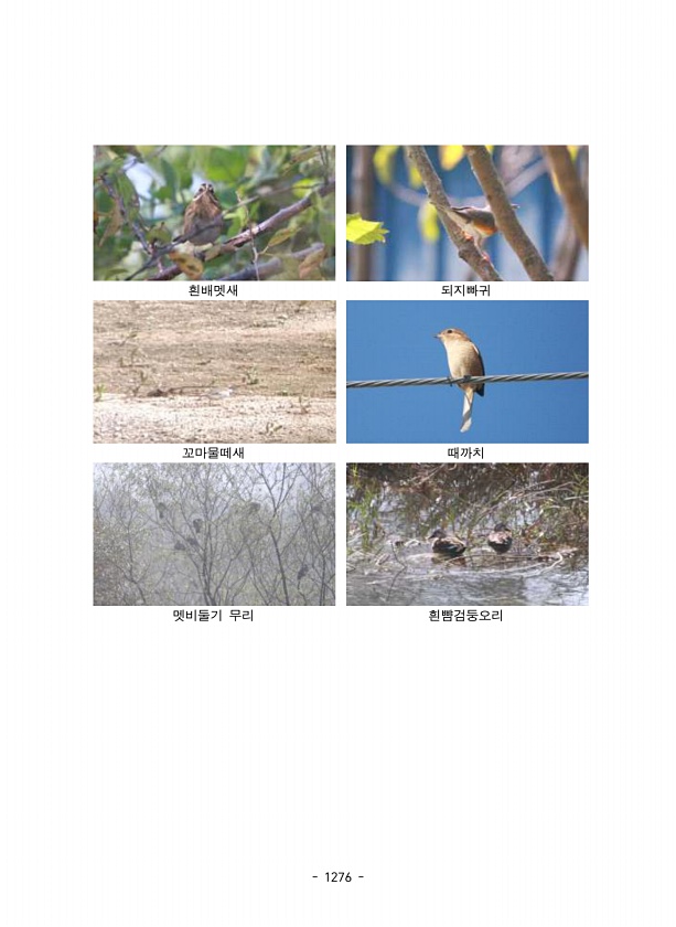 1276 흰배멧새 되지빠귀 꼬마물떼새 때까치 멧비둘기 무리흰뺨검둥오리