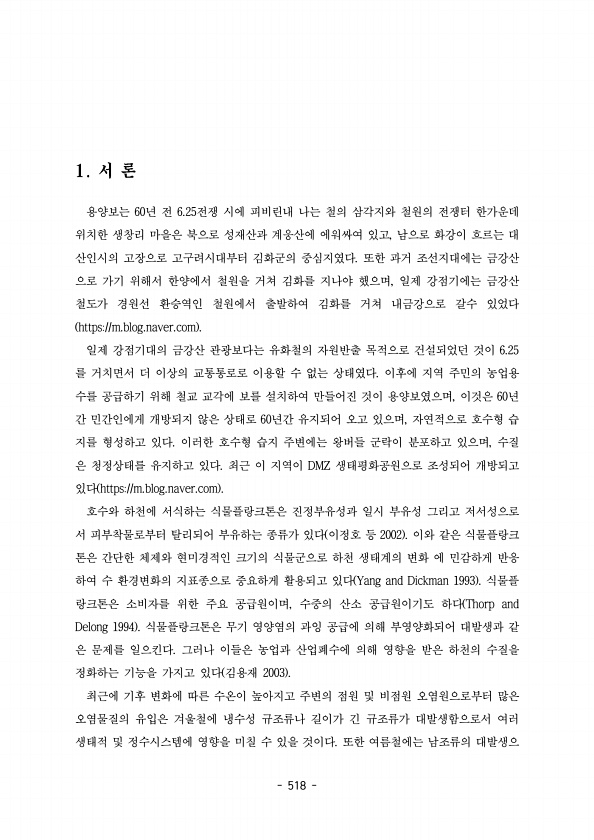 518 용양보는 년 전 전쟁 시에 피비린내 나는 철의 삼각지와 철원의 전쟁터 한가운데 60 6.25 위치한 생창리 마을은 북으로 성재산과 계웅산에 에워싸여 있고 남으로 화강이 흐르는 대 , 산인시의 고장으로 고구려시대부터 김화군의 중심지였다 또한 과거 조선지대에는 금강산 으로 가기 위해서 한양에서 철원을 거쳐 김화를 지나야 했으며 일제 강점기에는 금강산 , 철도가 경원선 환승역인 철원에서 출발하여 김화를 거쳐 내금강으로 갈수 있었다 https//m.blog.naver.com 일제 강점기대의 금강산 관광보다는 유화철의 자원반출 목적으로 건설되었던 것이 6.25 를 거치면서 더 이상의 교통통로로 이용할 수 없는 상태였다 이후에 지역 주민의 농업용 수를 공급하기 위해 철교 교각에 보를 설치하여 만들어진 것이 용양...