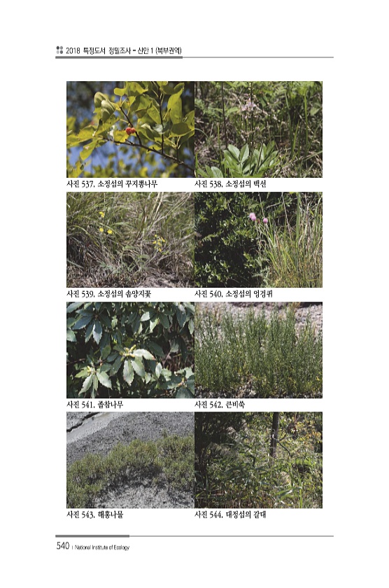 2018 특정도서 정밀조사 신안 1 북부권역 540 ? National Institute of Ecology 사진 537. 소정섬의 꾸지뽕나무 사진 538. 소정섬의 백선 사진 539. 소정섬의 솜양지꽃 사진 540. 소정섬의 엉겅퀴 사진 541. 졸참나무 사진 542. 큰비쑥 사진 543. 해홍나물 사진 544. 대정섬의갈대