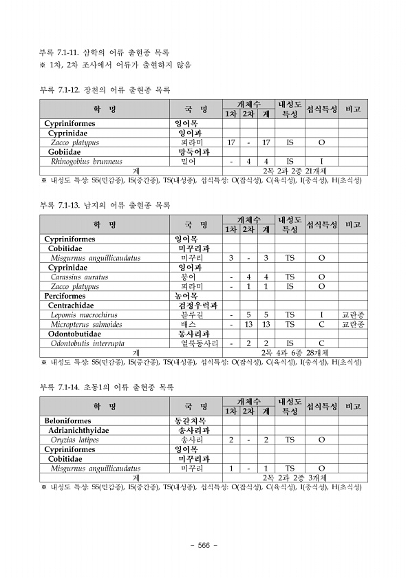 1305 기록하고, 표본은 정확한 채집지의 장소, 날짜, 채집자 및 종명을 기록하여 표본병에 넣고 80% Ethyl alcohol로 고정하여 장기간 보관하였다. 동정된 학명의 체계 및 국명은 한국곤충 명집 한국곤충학회, 1994 과 한국동물명집 한국동물분류학회, 1997 을 참고하였고, 국립생 물자원관에서 사용하는 종목록을 기준으로 작성하였다. 3 군집분석 물환경 평가를 위한 군집 분석은 조사지점별로 정량적으로 채집된 자료로부터 출현한 분류군의 수를 비교하여 출현개체수, 우점종, 군집지수 우점도지수, 다양도지수, 풍부도 지수 및 균등도지수를 산출하였다. 한편 출현종수의 경우에는 정성적으로 얻어진 자료를 포함하여 산출하였다. 총출현개체수를 N, i 종의 개체수를 Ni, 총 출현종수를 S, 제1우점종 의 개체수...