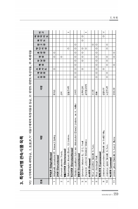 559 3. 번호 학명 국명 소 정 섬 대 정 섬 소 허 사 도 매 섬 부 남 섬 대 섬 호 감 섬 밖 다 리 섬 법 고 섬 육 각 도 바 람 막 이 도 비 고 부처손과 Selaginellaceae 1 Selaginella tamariscina P. Beauv. Spring 부처손 O O O 고비과 Osmundaceae 2 Osmunda japonica Thunb. 고비 O 발풀고사리과 Gleicheniaceae 3 Diplopterygium linearis Burm. f. Underw. 발풀고사리 O Ⅰ 잔고사리과 Dennstaedtiaceae 4 Pteridium aquilinum Kuhn var. latiusculum Desv. Underw. ex A. Heller 고사리 O O O O O O O O ...