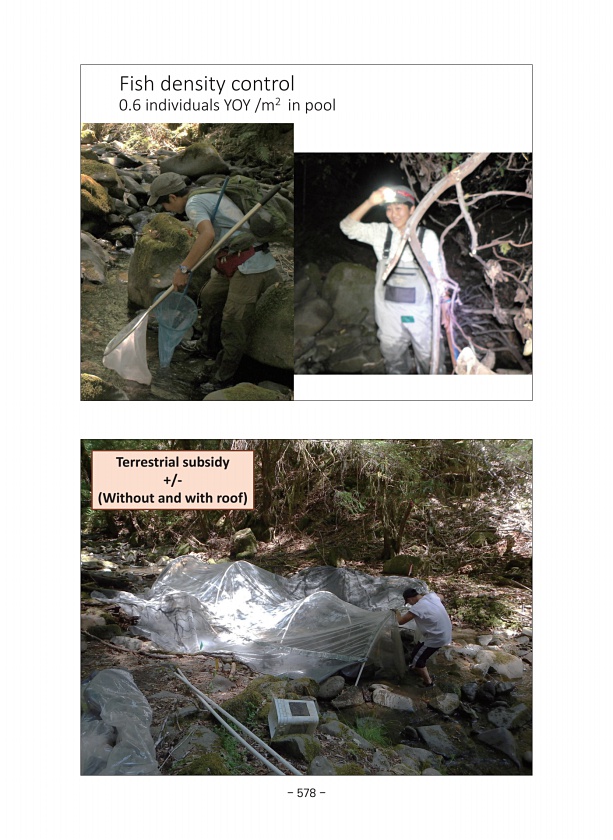 Terrestrial subsidy +/- Without and with roof Fish density control 0.6 individuals YOY /m2 in pool 578