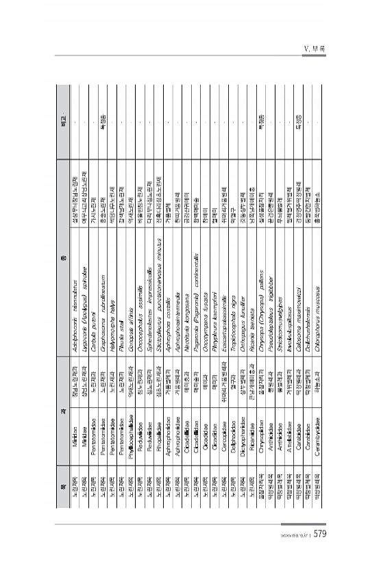 579 목 과 종 비고 노린재목 Miridae 장님노린재과 Adelphocoris triannulatus 설상무늬장님노린재 노린재목 Miridae 장님노린재과 Lygocoris Apolygus spinolae 애무늬고리장님노린재 노린재목 Pentatomidae 노린재과 Carbula putoni 가시노린재 노린재목 Pentatomidae 노린재과 Graphosoma rubrolineatum 홍줄노린재 특정종 노린재목 Pentatomidae 노린재과 Halyomorpha halys 썩덩나무노린재 노린재목 Pentatomidae 노린재과 Plautia stali 갈색날개노린재 노린재목 Phyllocephalidae 억새노린재과 Gonopsis affinis 억새노린재 노린재목 Reduvi...