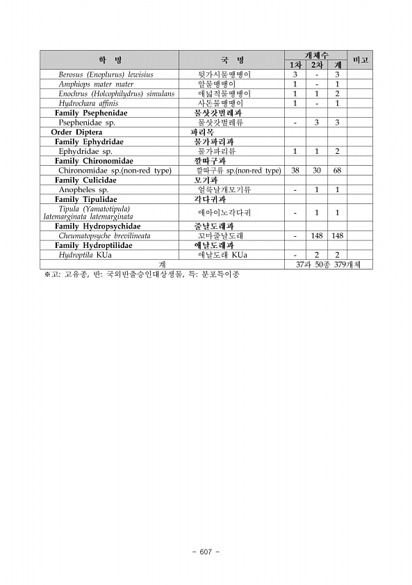 593 목 과 종 비고 노린재목 Membracidae 뿔매미과 Gargara Gargara genistae 동굴뿔매미 노린재목 Miridae 장님노린재과 Adelphocoris triannulatus 설상무늬장님노린재 노린재목 Miridae 장님노린재과 Apolygus pulchellus 새무늬고리장님노린재 노린재목 Miridae 장님노린재과 Apolygus spinolae 애무늬고리장님노린재 노린재목 Miridae 장님노린재과 Orthotylus Melanotrichus flavosparsus 명아주장님노린재 노린재목 Miridae 장님노린재과 Polymerus Poeciloscytus cognatus 각시장님노린재 노린재목 Miridae 장님노린재과 Polymerus Polymerus pekinensi...