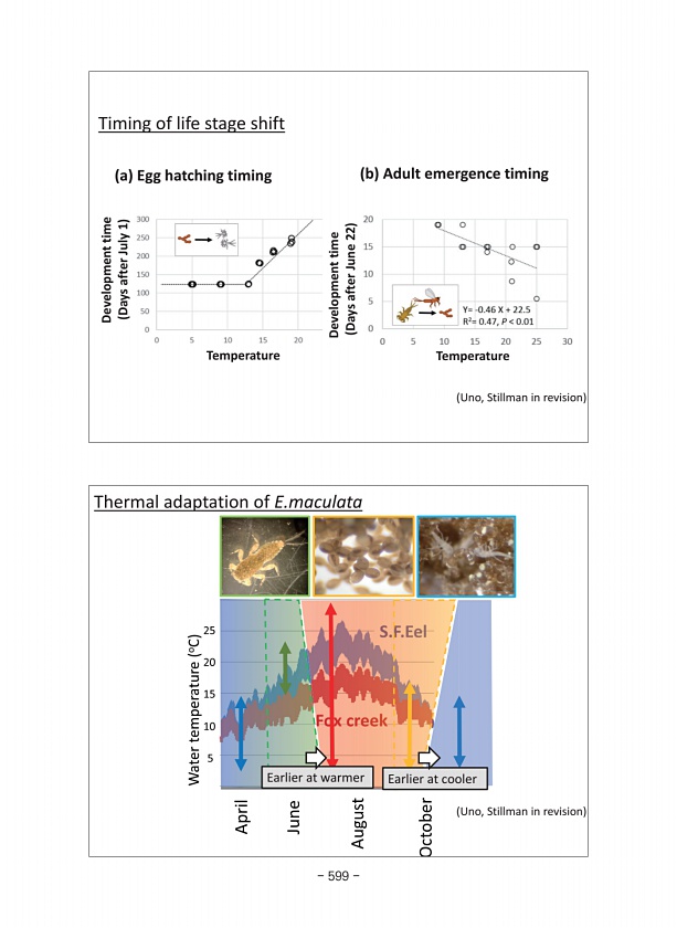 Thermal adaptation of E.maculata Earlier at warmer Earlier at cooler Uno, Stillman in revision a Egg hatching timing b Adult emergence timing Timing of life stage shift Uno, Stillman in revision Temperature Temperature Development time Days after July 1 Development time Days after June 22 599