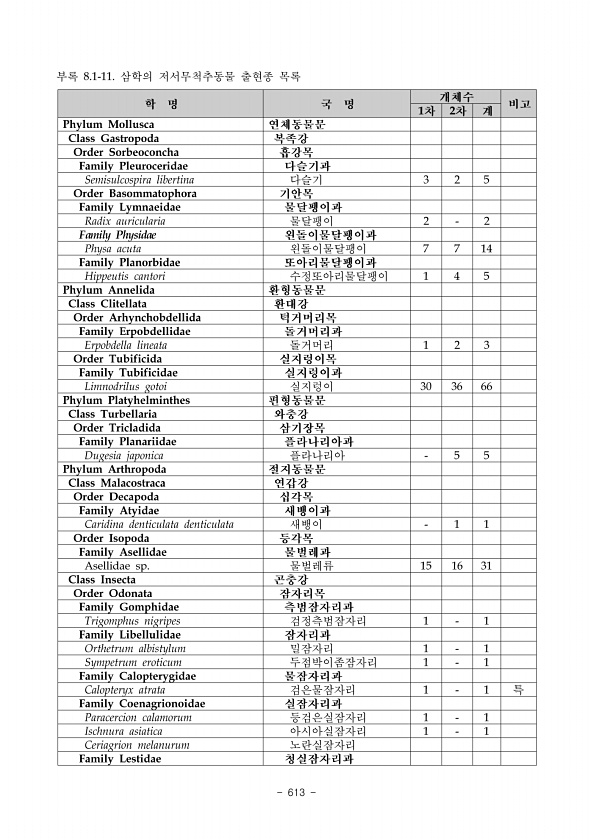 603 어는 한강 및 낙동강 수계의 최상류 지역에 국한되어 서식하는 어종으로 본 조사지역인 영 월 한반도 습지는 이들 어종의 주요 서식처가 아니기 때문에 출현하지 않은 것으로 판단된 다. 출현 어종 중 한국고유종이 18종 출현하여 한국고유종의 출현비율이 50.0%로 나타났다. 이는 한강수계의 평균 고유종의 출현비율인 41.750.0% 이광열 등, 2006 이 범주에 포함되 는 값이나 평창강의 고유종 출현비율인 57.1% 이광열 등, 2006 보다는 다소 낮은 값올 보 였다. 이는 평창강 자료의 경우 대부분 조사지역이 여울을 포함한 유수지역이었으나 본 조 사지역은 정수역이 포함되어 상대적으로 한국고유종의 출현비율이 적게 나타난 것으로 판 단된다. 출현 어종의 과별 비교풍부도 분석 결과 잉어과와 미꾸리과 어류가...