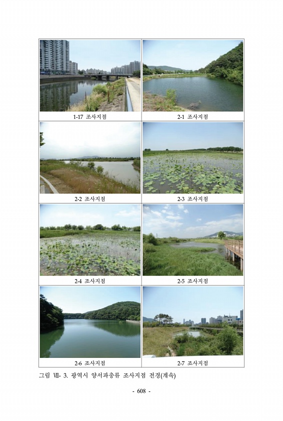 1-17 조사지점 2-1 조사지점 2-2 조사지점 2-3 조사지점 2-4 조사지점 2-5 조사지점 2-6 조사지점 2-7 조사지점 그림 Ⅶ- 3. 광역시 양서파충류 조사지점 전경 계속 608