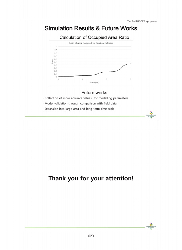 Thank you for your attention! Simulation Results & Future Works The 2nd NIE-CER symposium ? Collection of more accurate values for modelling parameters ? Model validation through comparison with field data ? Expansion into large area and long-term time scale Calculation of Occupied Area Ratio Future works 623