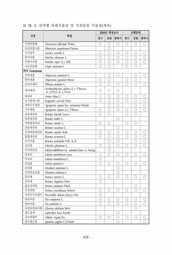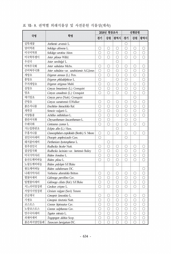 표 Ⅶ- 6. 경상북도의 행정구역별 양서·파충류 서식현황 계속 지역명 종명 8. 봉화군 9. 상주시 10. 성주군 1 2 3 4 5 6 7 1 2 3 4 5 6 7 8 1 2 3 4 5 6 7 8 황소개구리 20 1 6 노란배거북 리버쿠터 레드벨리쿠터 붉은귀거북 중국줄무늬목거북 페닌슐라쿠터 플로리다레드벨리 쿠터 도롱뇽 두꺼비 3 2 1 무당개구리 북방산개구리 3 18 2 3 2 2 3 1 옴개구리 2 4 1 8 2 1 10 3 6 4 1 3 2 2 1 2 1 참개구리 1 2 3 3 4 2 청개구리 11 한국산개구리 구렁이 남생이 1 1 누룩뱀 1 대륙유혈목이 도마뱀 무자치 살모사 1 1 쇠살모사 1 1 1 1 유혈목이 1 1 자라 줄장지뱀 633
