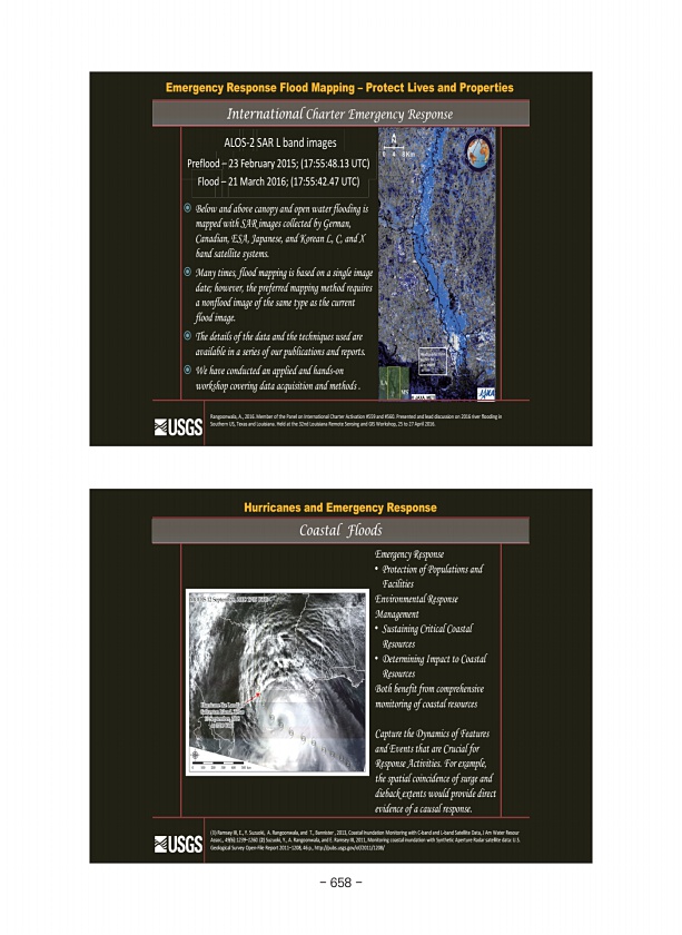 Coastal Floods Hurricanes and Emergency Response 1 Ramsey III, E., Y. Suzuoki, A. Rangoonwala, and T., Bannister , 2013, Coastal Inundation Monitoring with C-band and L-band Satellite Data, J Am Water Resour Assoc., 49 6 1239?1260. 2 Suzuoki, Y., A. Rangoonwala, and E. Ramsey III, 2011, Monitoring coastal inundation with Synthetic Aperture Radar satellite dataU.S. Geological Survey Open-File Repor...