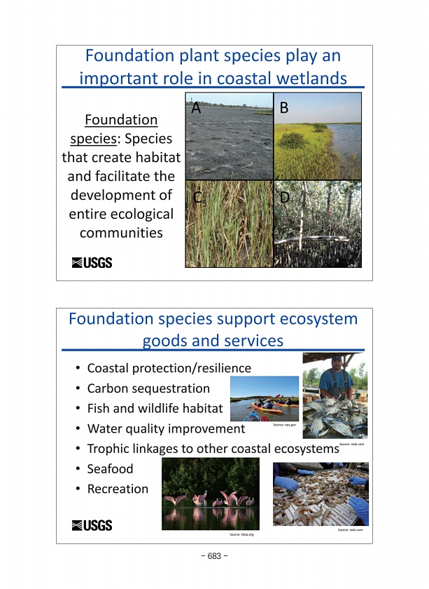 Foundation species support ecosystem goods and services ? Coastal protection/resilience ? Carbon sequestration ? Fish and wildlife habitat ? Water quality improvement ? Trophic linkages to other coastal ecosystems ? Seafood ? Recreation Sourcenola.com Sourcenola.com Sourcenps.gov Sourcetbep.org Foundation plant species play an important role in coastal wetlands Foundation speciesSpecies that creat...