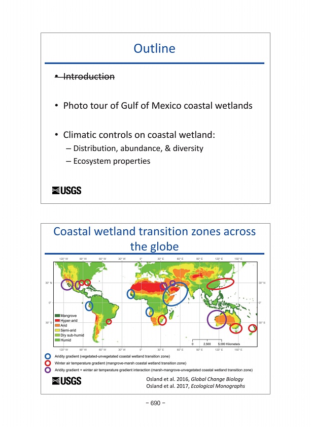 Coastal wetland transition zones across the globe Osland et al. 2016, Global Change Biology Osland et al. 2017, Ecological Monographs Outline ? Introduction ? Photo tour of Gulf of Mexico coastal wetlands ? Climatic controls on coastal wetland? Distribution, abundance, & diversity ? Ecosystem properties 690