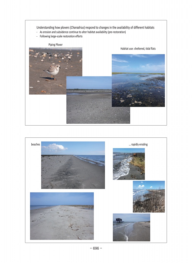 beaches … rapidly eroding Understanding how plovers Charadrius respond to changes in the availability of different habitats As erosion and subsidence continue to alter habitat availability pre-restoration Following large-scale restoration efforts Piping Plover Habitat usesheltered, tidal flats 696