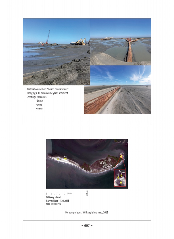 For comparison… Whiskey Island map, 2015 Restoration method“beach nourishment” Dredging 10 billion cubic yards sediment Creating 900 acres -beach -dune -marsh 697