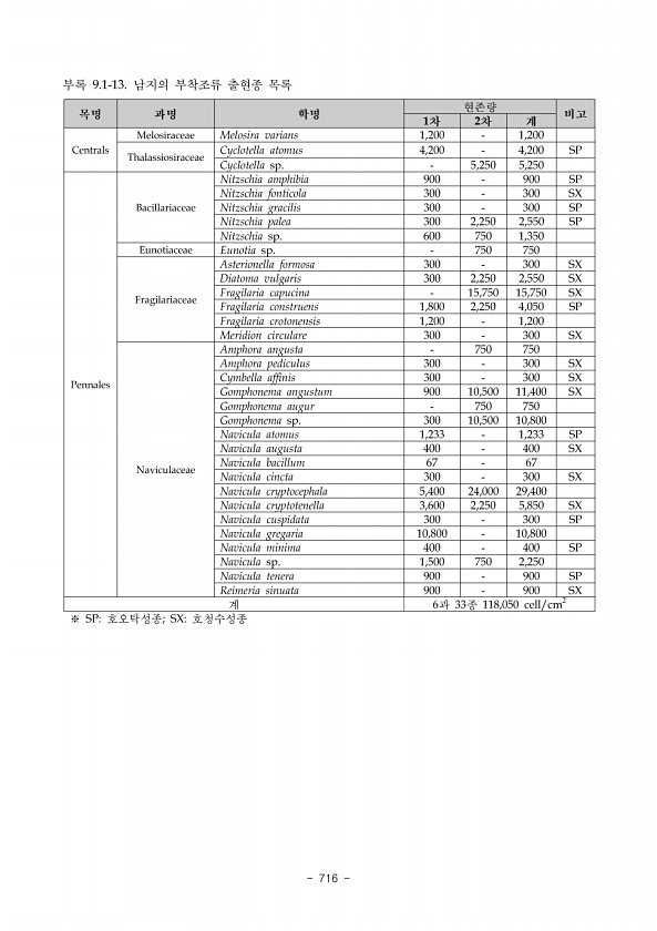 707 7. 부록 종목록 분류군 명 조사결과 비고 Ⅰ지역 Ⅱ지역 Ⅲ지역 Order Soricomorpha 첨서목 Family Talpidae 두더지과 Mogera wogura 두더지 T T T Order Carnivora 식육목 Family Canidae 개과 Nyctereutes procyonoides 너구리 F Family Mustelidae 족제비과 Lutra lutra 수달 D D D Ⅰ Meles leucurus 오소리 D,T Family Felidae 고양이과 Prionailurus bengalensis 삵 D D D Ⅱ Felis catus 고양이 V Order Artiodactyla 우제목 Family Cervidae 사슴과 Hydropotes inermis 고라니 D,F D,F D,F Cap...