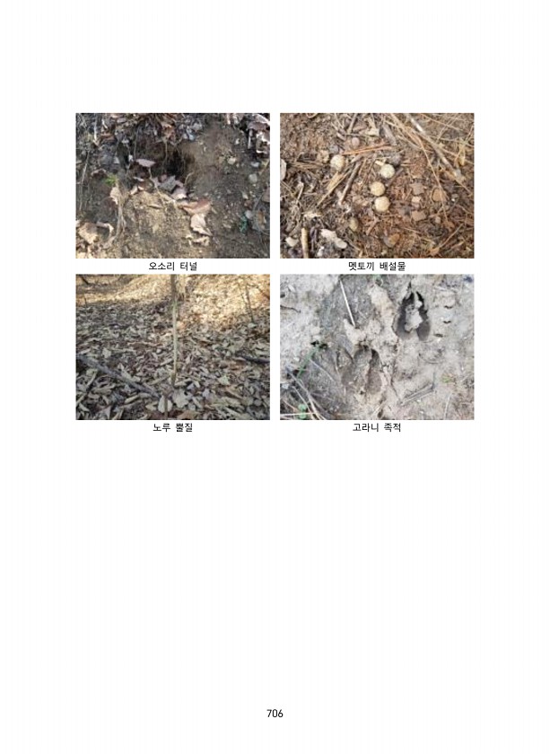706 오소리 터널 멧토끼 배설물 노루 뿔질 고라니족적