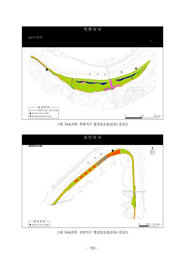 730 7. 부록 종목록 학 명 국 명 지점 1 2 3 4 5 6 Phylum Platyhelminthes 편형동물문 Class Turbellaria 와충강 Order Tricladida 삼기장목 Family Planariidae 플라나리아과 Dugesia japonica 플라나리아 2 Phylum Mollusca 연체동물문 Class Gastropoda 복족강 Order Basommatophora 기안목 Family Lymnaeidae 물달팽이과 Radix auricularia 물달팽이 15 Family Physidae 왼돌이물달팽이과 Physa acuta 왼돌이물달팽이 1 1 8 6 Order Mesogastropoda 중복족목 Family Pleuroceridae 다슬기과 Semisulcospira g...