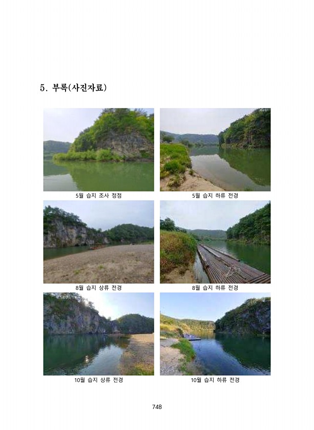 748 5. 부록 사진자료 5월 습지 조사 정점 5월 습지 하류 전경 8월 습지 상류 전경 8월 습지 하류 전경 10월 습지 상류 전경 10월 습지 하류전경