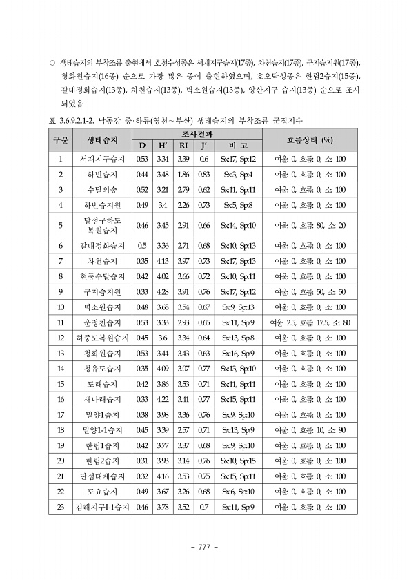 제목 : 낙동강 중·하류지역 생태공간 조사·평가 : 부록