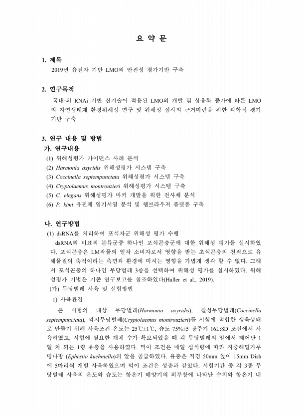 제목 : (2019) 유전자 기반 LMO의 안전성 평가기반 구축