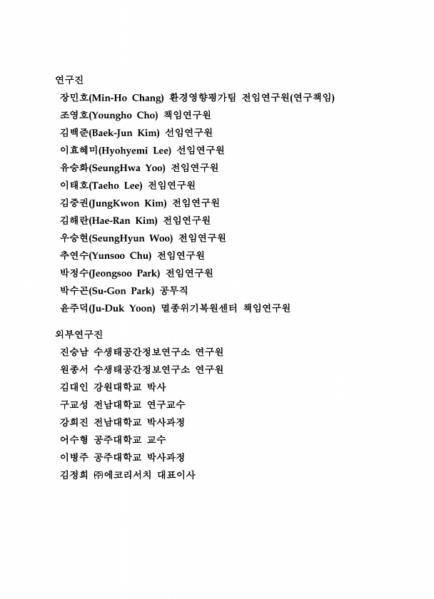 제목 : (2019) 선형사업대상 생태분야 환경영향평가 방법 연구. Ⅲ