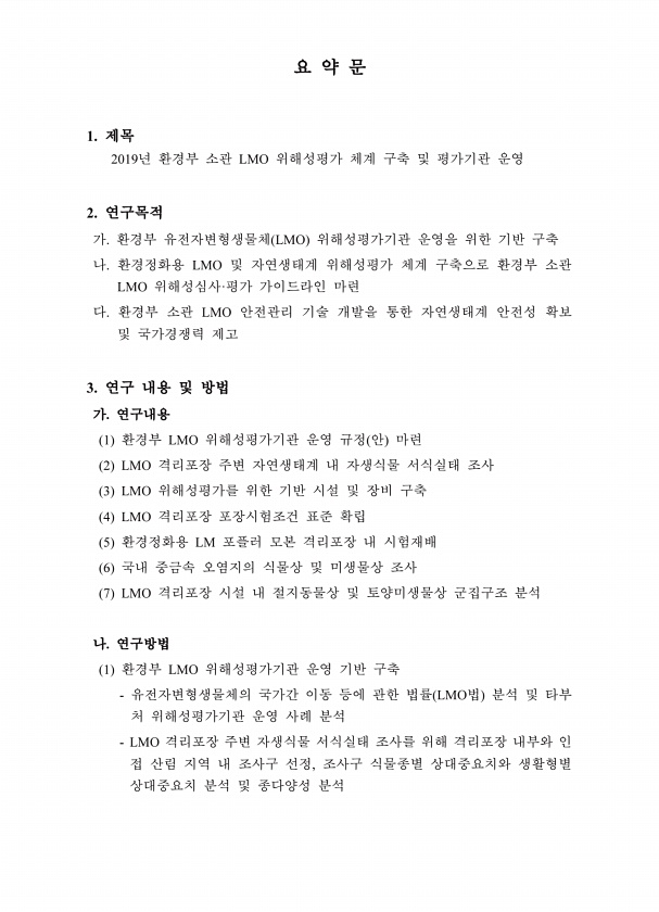 제목 : 생태계 보전기술 개발 및 기반 구축