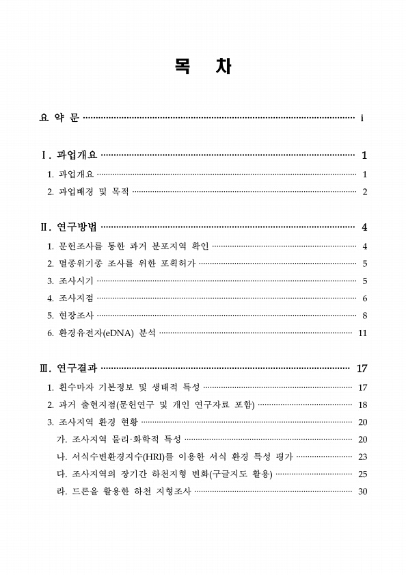 제목 : 금강수계 흰수마자[멸종위기 Ⅰ급] 분포 정밀조사 : 최종보고서