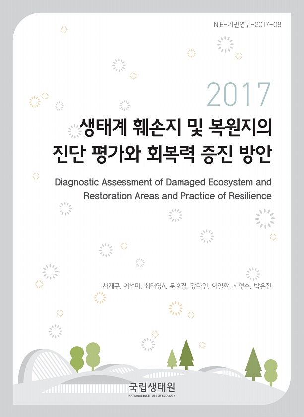 NIE-기반연구-2017-08 2017 생태계 훼손지 및 복원지의 진단 평가와 회복력 증진 방안 Diagnostic Assessment of Damaged Ecosystem and Restoration Areas and Practice of Resilience 차재규, 이선미, 최태영A, 문호경, 강다인, 이일환, 서형수,박은진