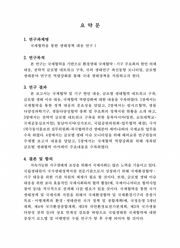 제목 : (2018) 국제협력을 통한 생태정책 대응연구