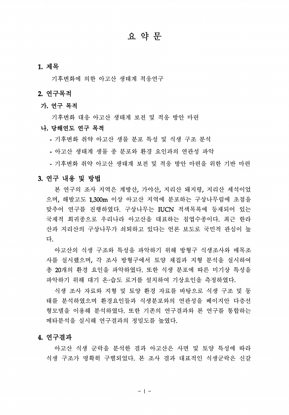 제목 : 기후변화에 의한 아고산 생태계 적응 연구