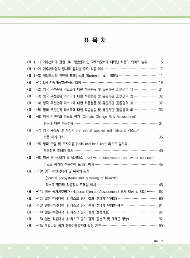 제목 : 생태분야 기후변화 적응 사례집 : 국내외 생태분야 기후변화 적응방안의 흐름과 발전방향