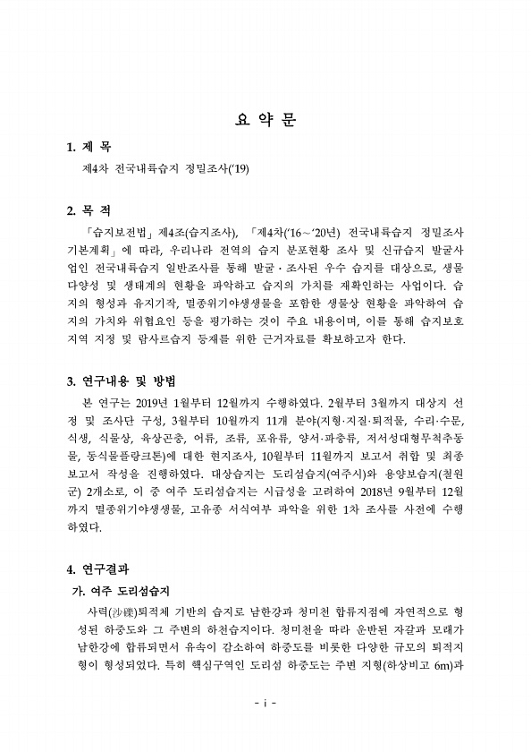 제목 : (제4차) 전국내륙습지 정밀조사(’19)